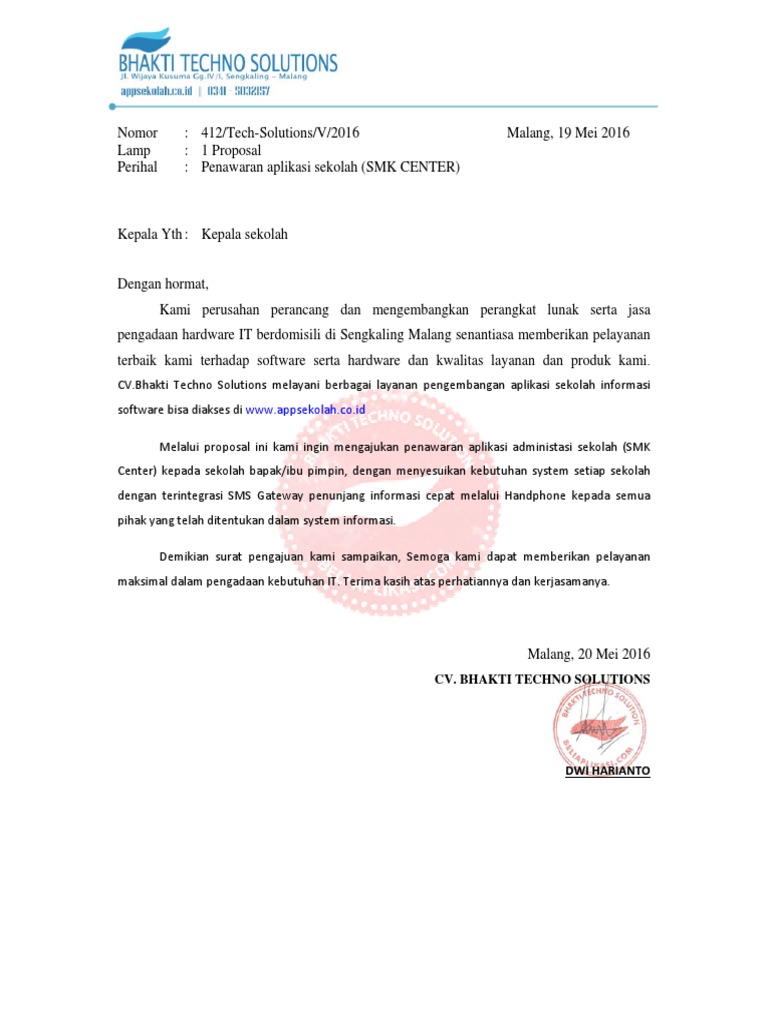 Surat ini tidak jauh berbeda dengan contoh surat penawaran harga barang, kerjasama dan jasa paling lengkap dan juga 3 contoh surat penawaran jasa perusahaan karena kesemuanya tersebut masih tergolong ke dalam surat yang berisi tentang penawaran terhadap barang maupun jasa. Contoh surat persetujuan penawaran harga. Biasanya surat penawaran ini dibuat oleh para pengusaha atau pebisnis dalam segi ekonomi berupa negosiasi. Adapun tujuan dari digunakannya surat niaga tersebut adalah untuk memperoleh keuntungan bagi perusahaan dan memajukan perusahaan. Dalam berbisnis ada berbagai macam aspek yang bisa membuat seseorang sukses. Tujuan dibuat surat penawaran ini, supaya jasa atau barang yang anda tawarkan bisa berjalan dengan lancar. Kerusakan software berupa aplikasi dan database yang diakibatkan oleh software b. Excellent air kepada bapak/ibu kepala sekolah sma harapan bangsa dengan maksud untuk menawarkan kerjasama dalam memberikan pelayanan jasa perancangan aplikasi website sekolah terkait. Surat penawaran merupakan suatu surat yang ditujukan kepada suatu instansi yang bertujuan untuk menawarkan sesuatu. Aplikasi gratis pengelolaan surat masuk surat keluar free. Yogyakarta, 28 juni 2019 no : Cara mengurus surat pindah antar provinsi secara o. Surat diatas merupakan contoh surat penawaran kerjasama yang dikirimkan oleh pt.